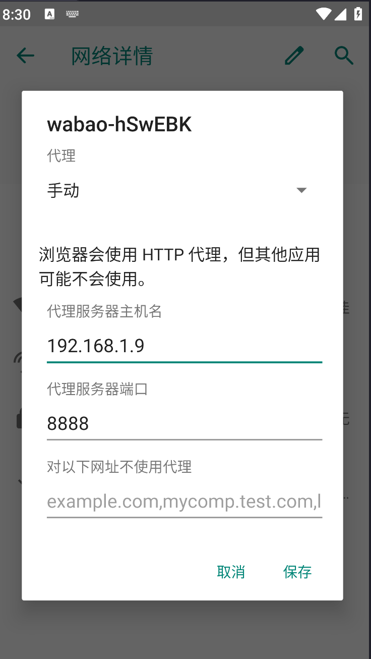 Burp设置好后,回到模拟器中将网络设置为代理模式。