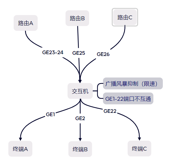 将GE1~GE22设置为:“打开端口隔离,打开防止广播风暴,DHCP,Snopping”